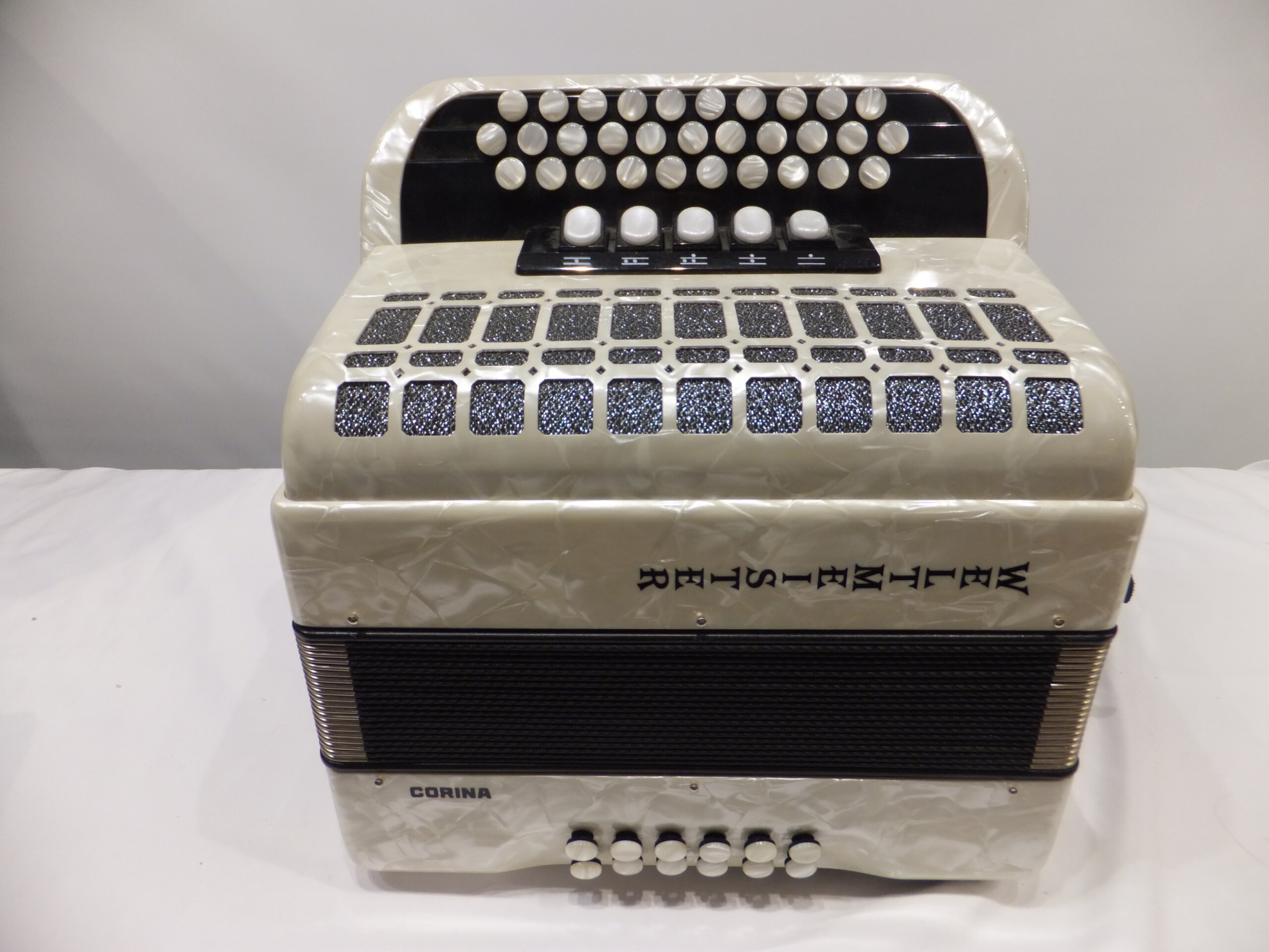How about this Weltmeister 3 row, GCF? Made for TexMex, this beautiful button accordion had the bass reed blocks removed to allow the bass buttons to work as an air valve. Also being in the most common Keys of GCF, this button accordion is ready for any band and to learn with as well.